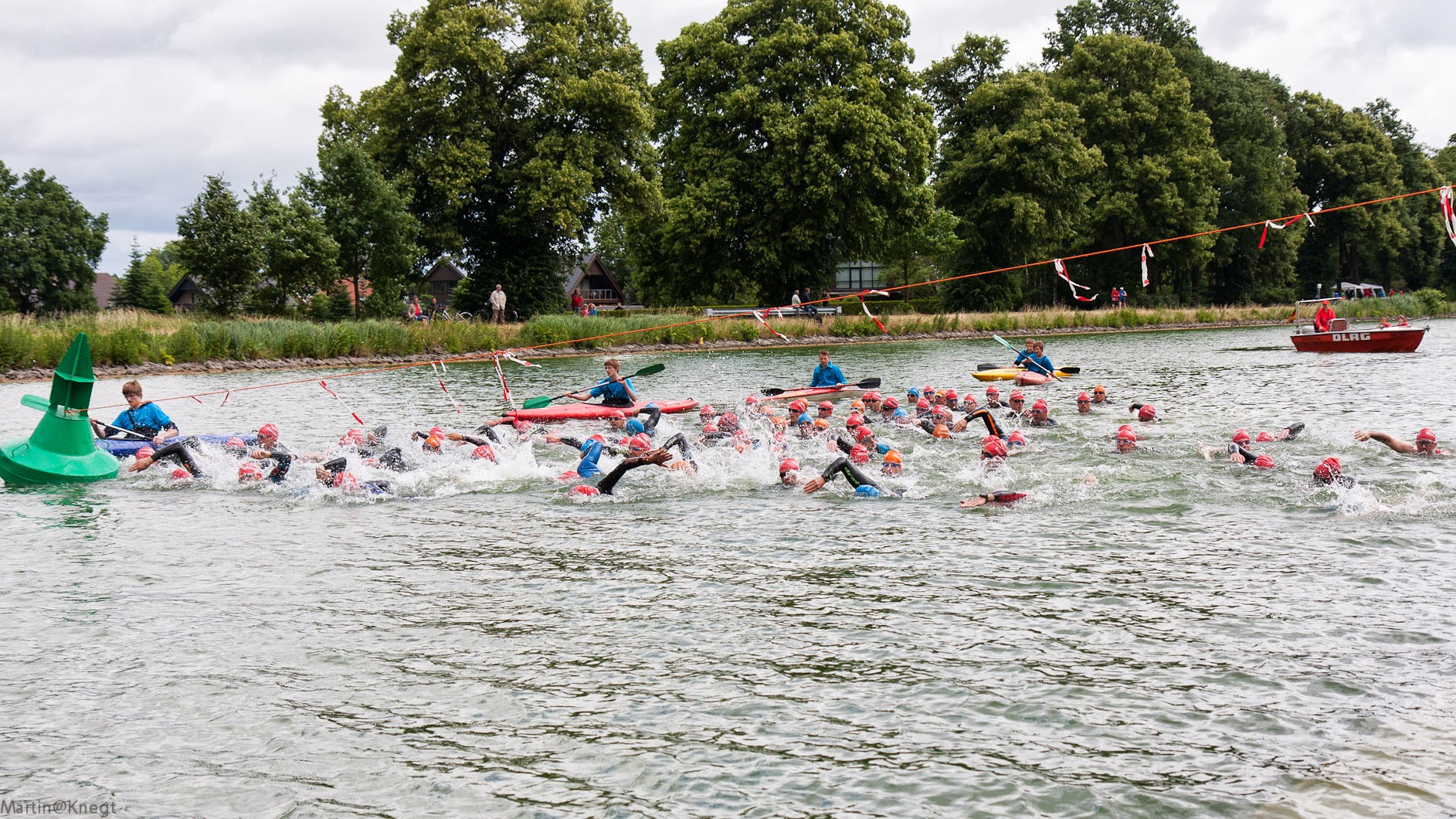 Die Schwimmdisziplin wurde im Mittellandkanal ausgetragen und nach den ersten wilden Machtkämpfen kamen wir fast erwartungsgemäß platziert nach 1.500 Meter mit Neopren aus dem Kanal; stark unerwartet führte Max Eggen unsere Mannschaft an und wechselte als erster aufs Rad.