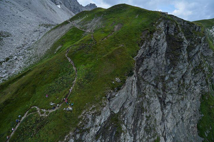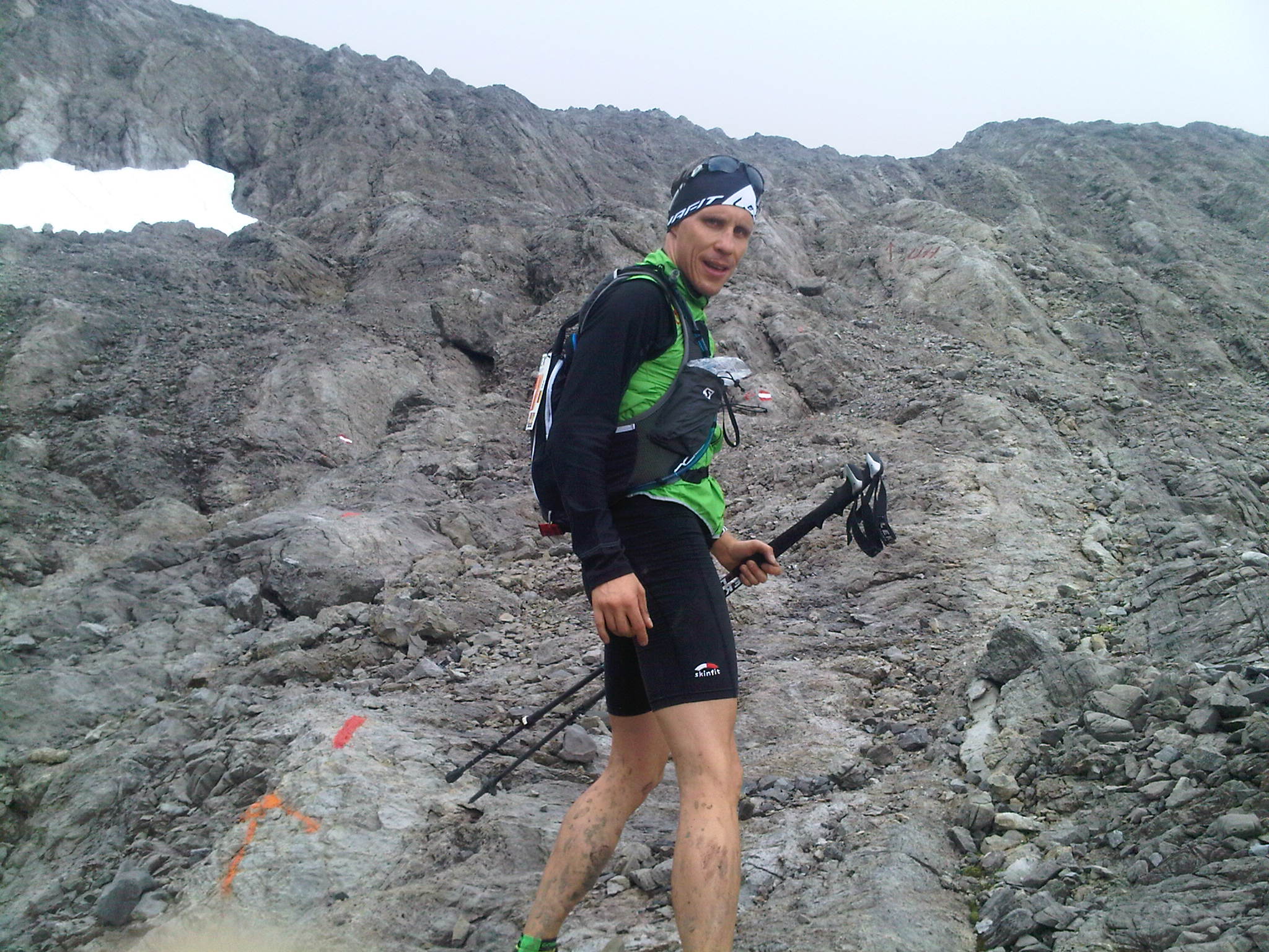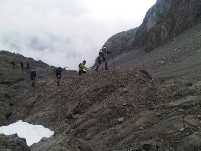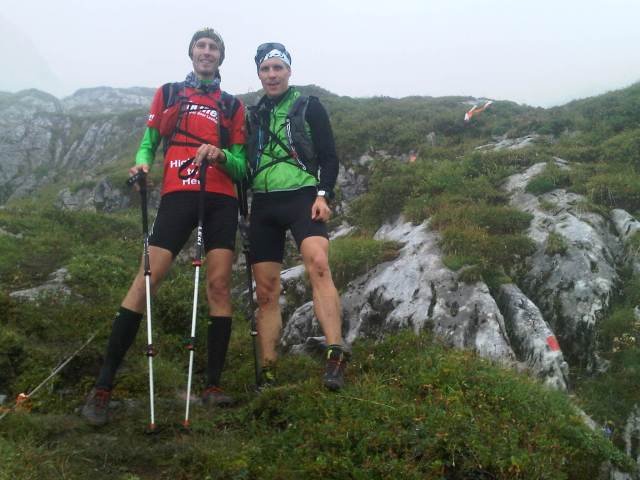 Die heutige Tour fällt in die Kategorie Hochalpin, mehrmals ging es auf allen vieren die rutschigen, steilen Felsabschnitte hoch, die teils mit Seilen gesichert waren. Wir kamen sehr gut voran und an den insgesamt drei Verpflegungsstationen gab es bergtypisch nicht nur Sportlernahrung, sondern auch herzhafte Kost, die bei den Temperaturen für uns sehr willkommen war.