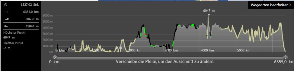 Süd Amerika Tour Höhenprofil