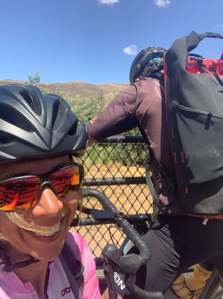 Tags später beschlossen wir, an unserem Plan und dem Weg festzuhalten und so fuhren wir los. Gisa war fit und drückte ordentlich die Berge hoch. Zwischendurch war es mal sehr off-Road, aber alles mit dem Gravelrad fahrbar, Gisa schob dann ein paar Mal mit ihren schmalen Reifen (mit meinen 48er Reifen ging das besser). Irgendwann realisierten wir, dass es so schlimm gar nicht war und kamen auf den Hauptweg. Freude pur und Erleichterung. Klar war, für normale Autos war der Abschnitt nicht fahrbar, aber mit dem Fahrrad kommst Du halt irgendwie überall durch (notfalls tragen).