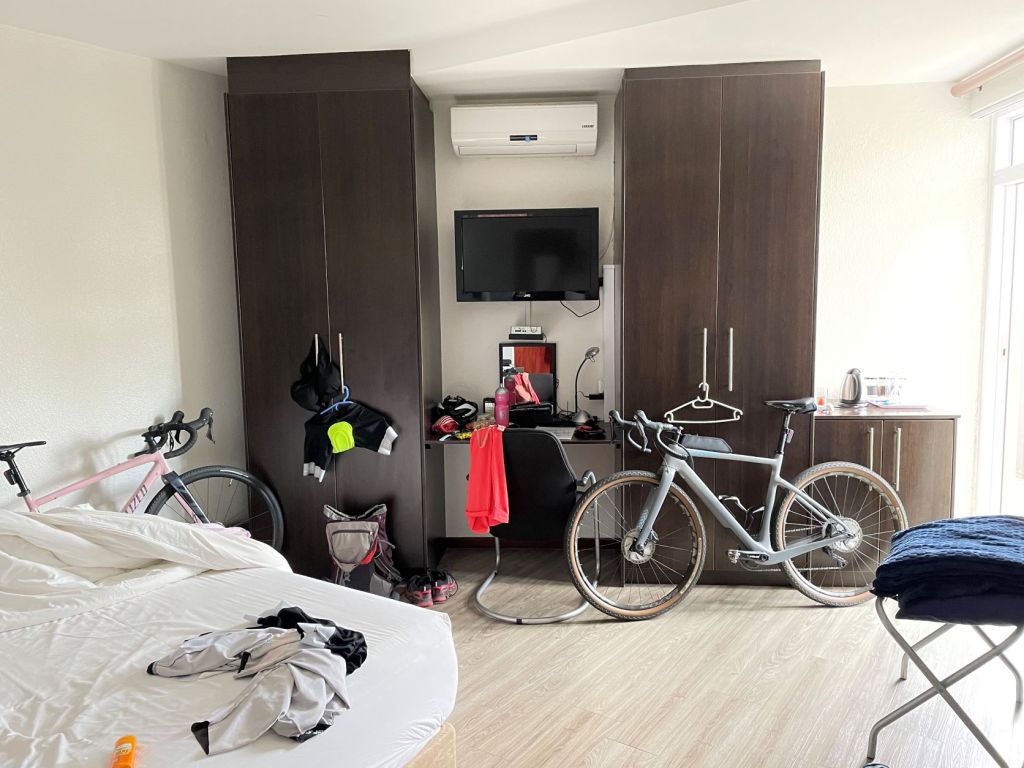 Das passte dann. Allerdings waren es von der Küche zum Zelt dann auch nochmal gut 2 Kilometer Gravelstrecke, natürlich mit dem Bike. Wir konnten den Sonnenuntergang und die Geräusche wilder Tiere gut genießen, wenngleich wir von mehreren Leuten angesprochen wurden, dass unser geplanter Weg mit unseren Rädern nicht fahrbar sei. Selbst für Geländewagen nicht, da durch den Starkregen vor Monaten ein Großteil des Weges weggespült worden ist. Die Alternative würde ein gut 20 Kilometer langer Umweg mit vielen Höhenmetern bedeuten, ebenfalls im unwegsamen Gelände. Der Anschlusstag hatte allerdings schon mit geplanten 130 km und 2.000 Höhenmetern genug Stunden.