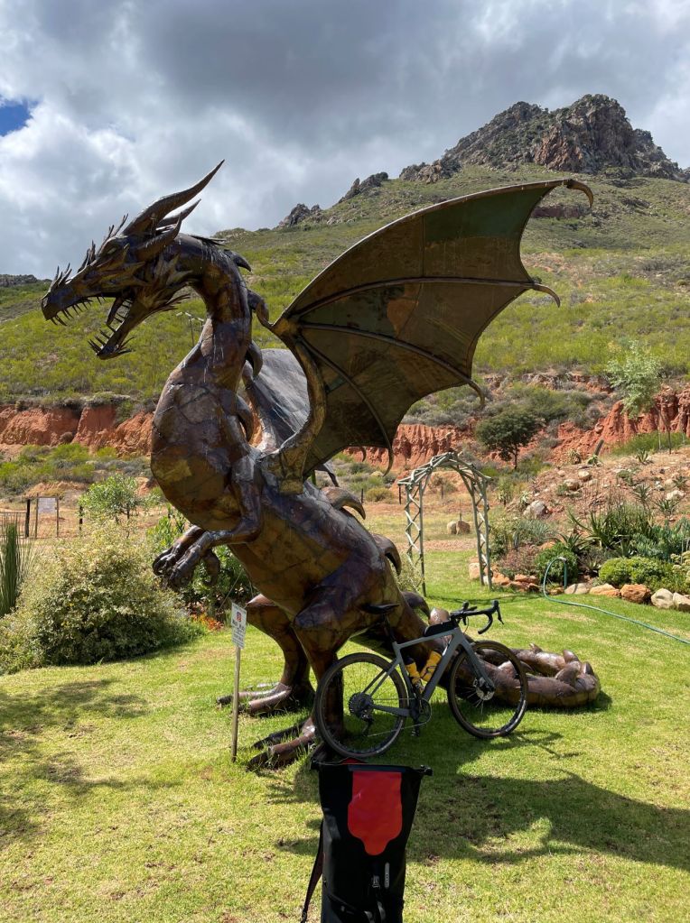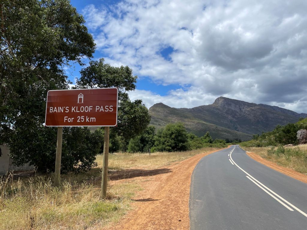Als ich wieder auf dem Rad saß, hatte Gisa gut eine Stunde Vorsprung, also alles gegeben und mal abgesehen von dem „Bains Kloof Pass“ einem der schönsten Pässe, die ich bisher gefahren bin, auf nagelneuem Asphalt, konnte ich Gisa erst nach etwa der Hälfte der Strecke einholen, unweit eines Townships (klingt gefährlich, ist es aber eigentlich nicht. Wir sind schon durch zig gefahren, allerdings meist, weil Komoot uns dadurch führte und nicht, weil wir das so geplant hatten). Township durchqueren ist tatsächlich nicht ohne, immer auf die Empfehlungen der Einheimischen hören, die meisten sind harmlos und deren Bewohner einfach nur arm und freundlich. Es gibt allerdings auch welche, die sollte man in jedem Fall meiden!