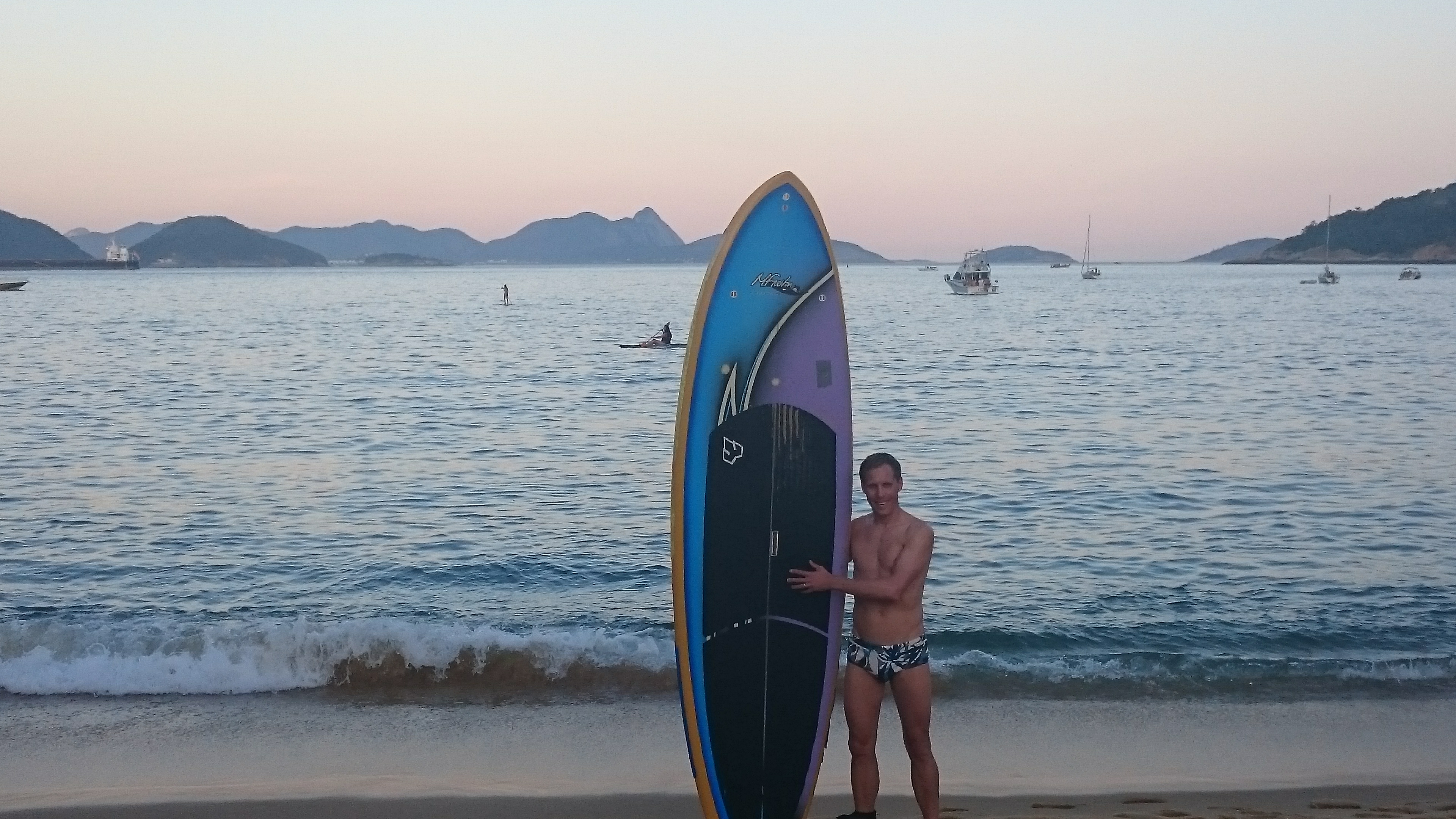 stand up Puddle am Strand von Rio